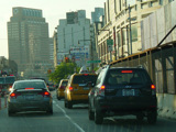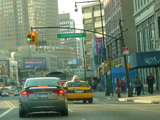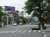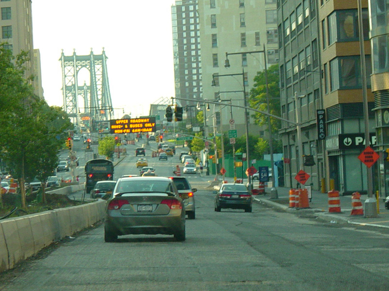 Flatbush Avenue intersects Tillary Street at a traffic light with an oversized street name sign. Turn right for access to the Brooklyn-Queens Expressway (I-278). Turn left for access to the Brooklyn Bridge. The Manhattan Bridge is straight ahead.