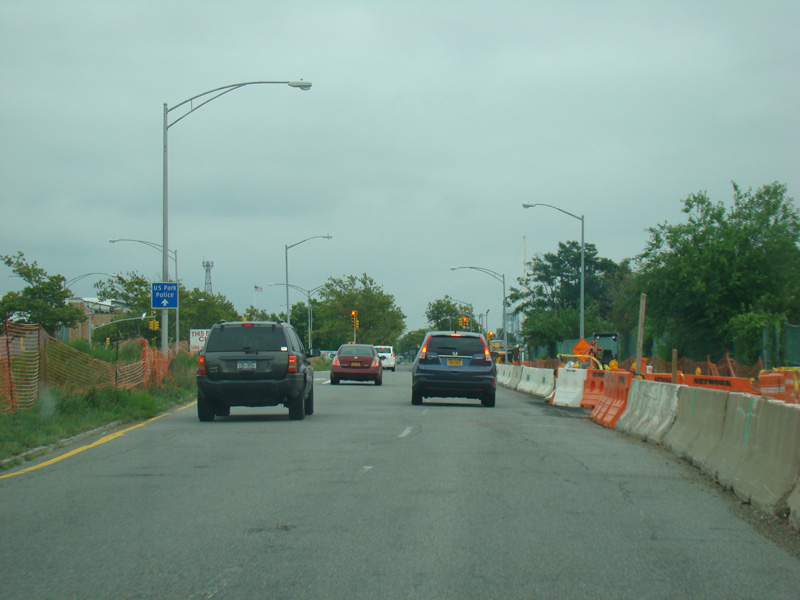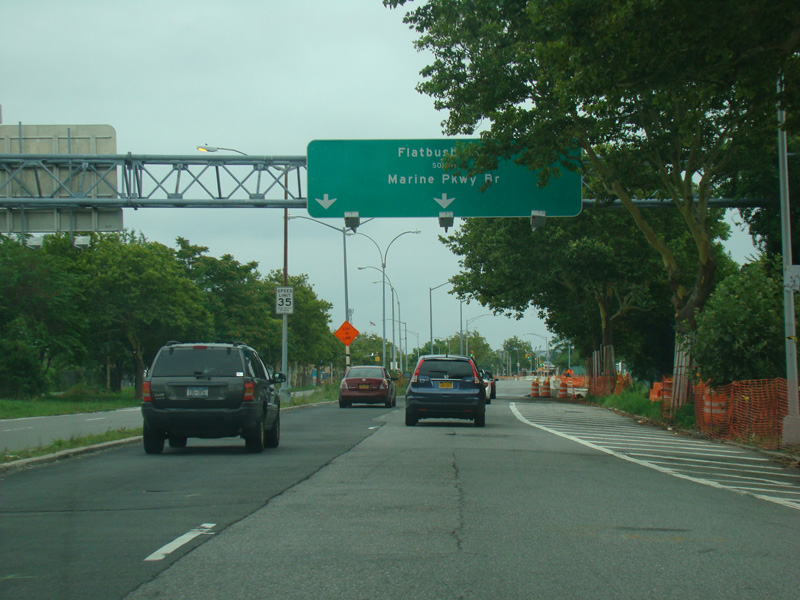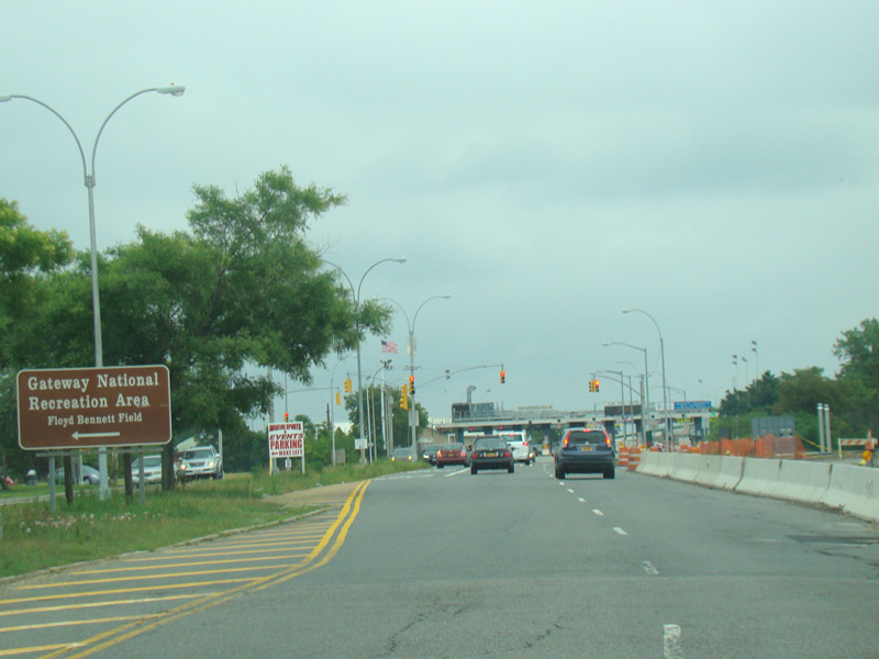 Skipping a significant distance to the south, Flatbush Avenue runs south through Floyd Bennett Field as four-lane divided road.