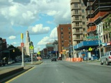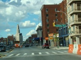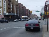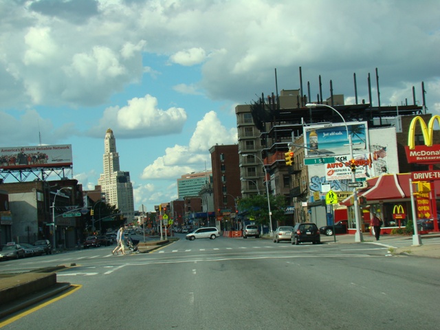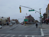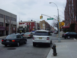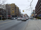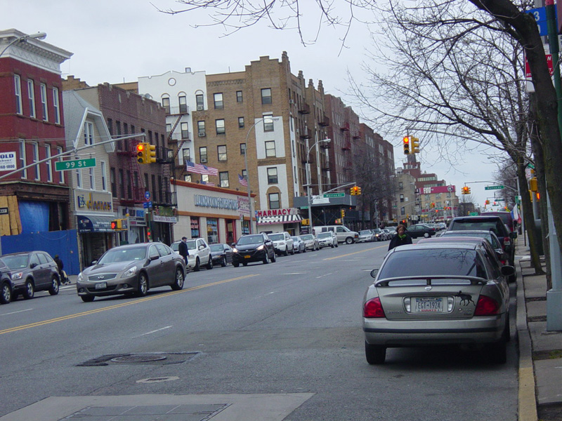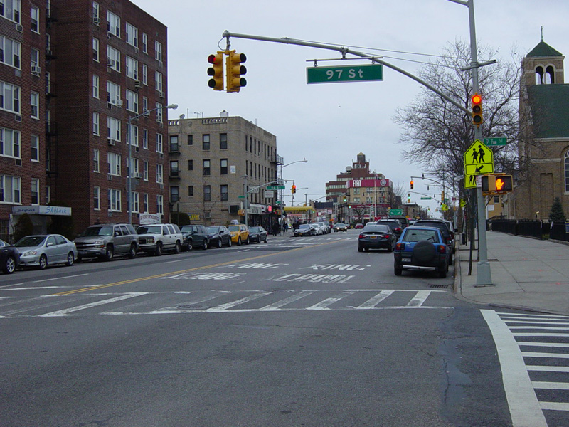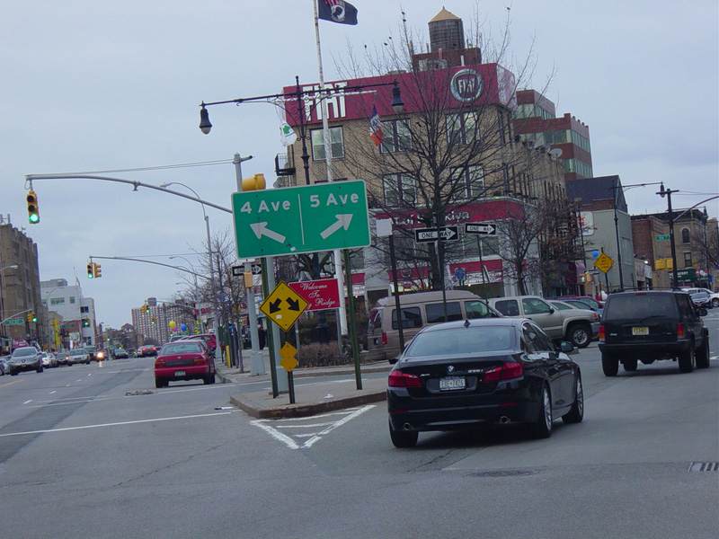 Just north of 95 Street, the road splits. Bear right for 5 Avenue, which begins here. Bear left to stay on 4 Avenue.