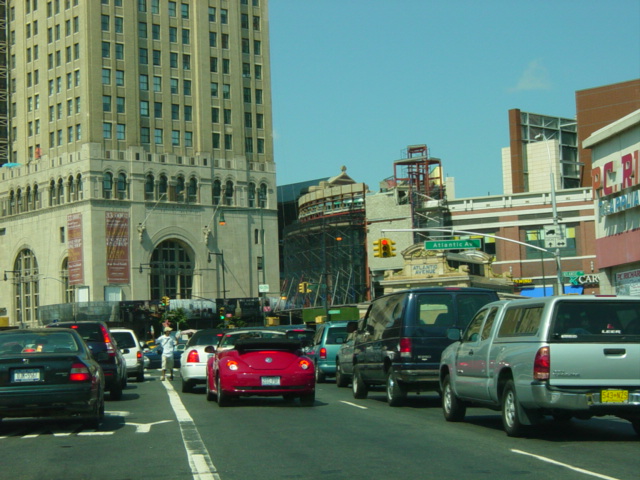 4 Avenue intersects Atlantic Avenue at a traffic light with an oversized street name sign. One block ahead, it ends at Flatbush Avenue.