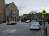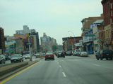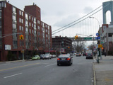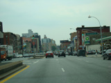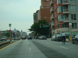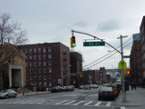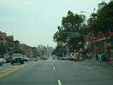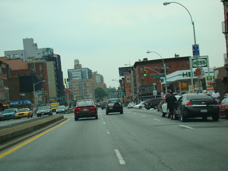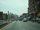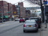Beginning here, the cross streets here are numbered starting with 1 Street and increasing as one travels south. There are oversized street name signs at most intersections. Just past 9 Street, elevated subway tracks cross 4 Avenue.