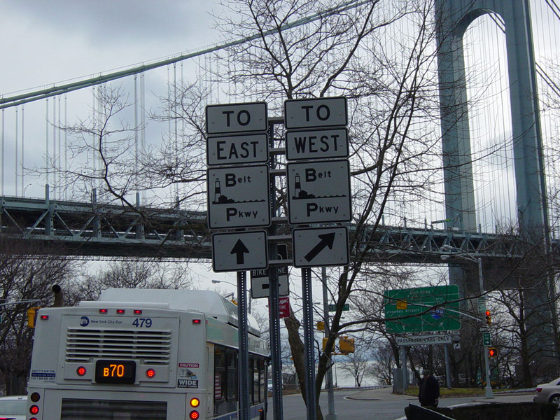 Shore Road begins on the right at a traffic light with an oversized street name sign. Just ahead, 4 Avenue ends at the Belt Parkway. Bear right to go west or continue straight ahead to go east. The parkway ends just a couple of miles west of here at the Brooklyn-Queens Expressway (I-278).
