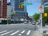 Fulton Street runs west through Brooklyn as a two-lane undivided road. There is a traffic light at Ashland Place.