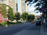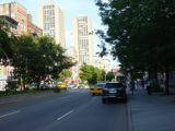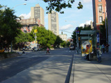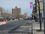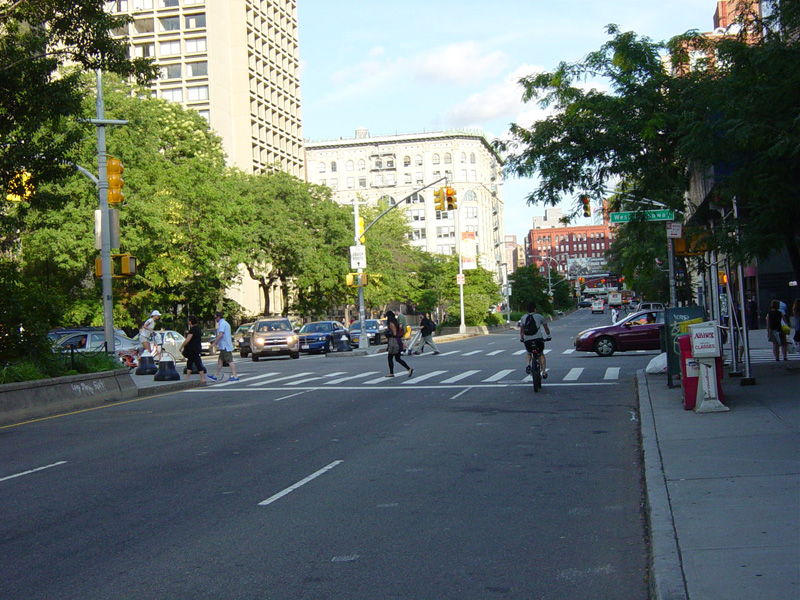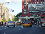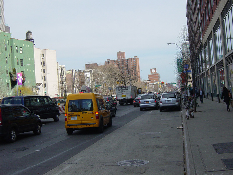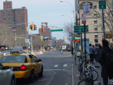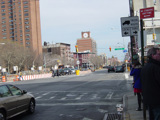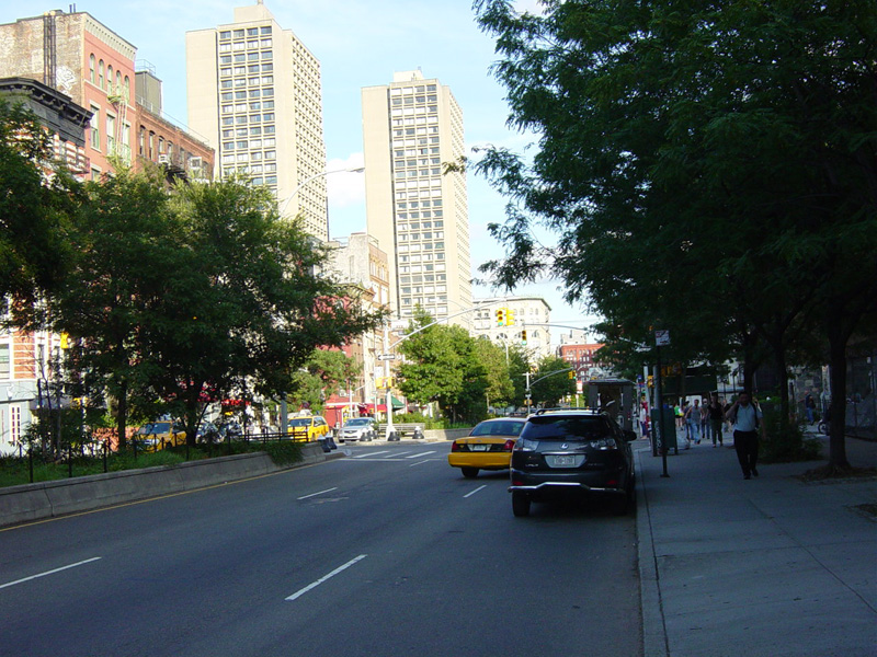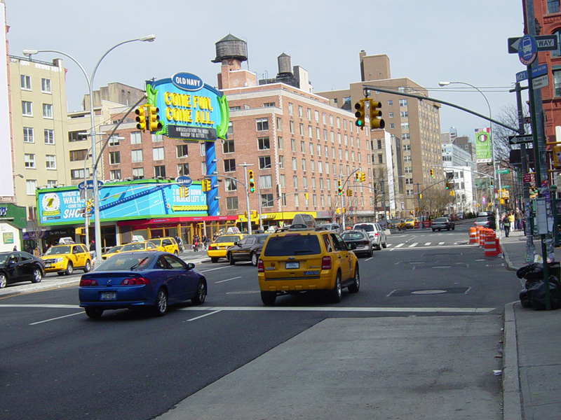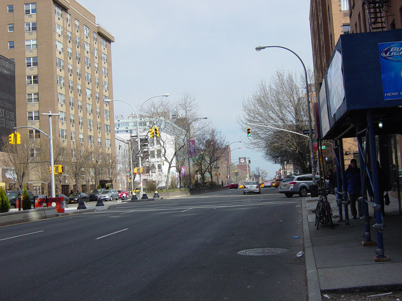 Houston Street runs east through the Lower East Side. There are traffic lights with oversized street name signs at the Bowery, 2 Avenue, Chrystie Street, 1 Avenue, and Allen Street.