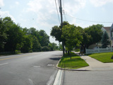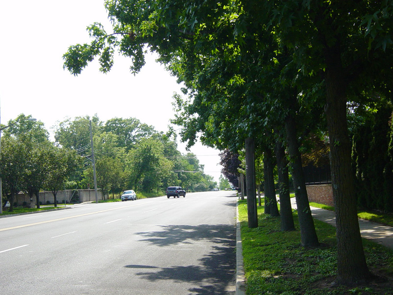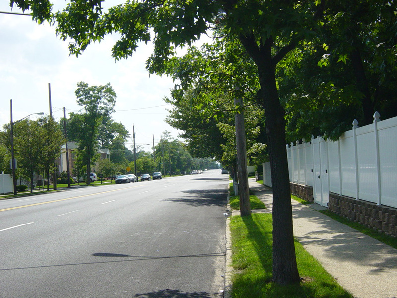 Hylan Boulevard runs west through Tottenville as a four-lane undivided road.
