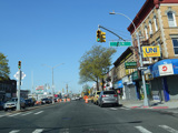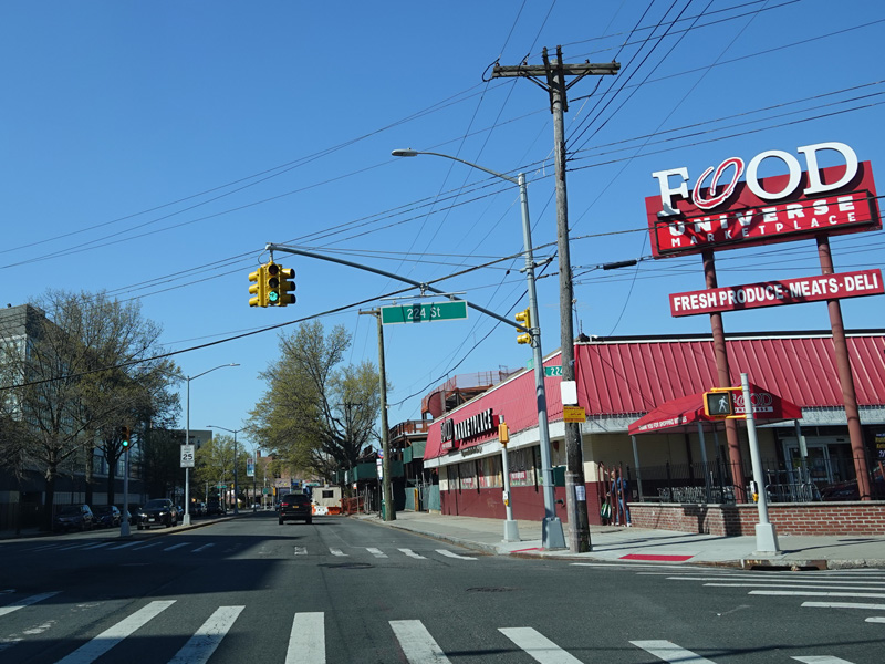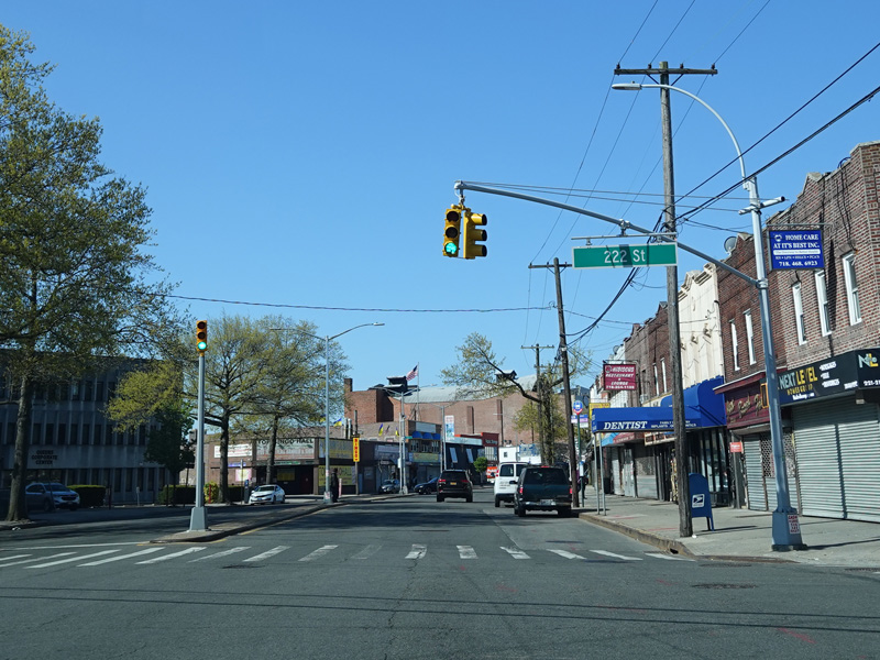 As Jamaica Avenue unambiguously enters Queens, the reference route ends, and the roadway comes under the jurisdiction of the NYCDOT. There are traffic lights with oversized street name signs at 224 Street and 222 Street.