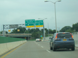 On the Queens side of the bridge, the roadway splits. Bear left for Beach Channel Drive. Bear right for Rockaway Point Boulevard.