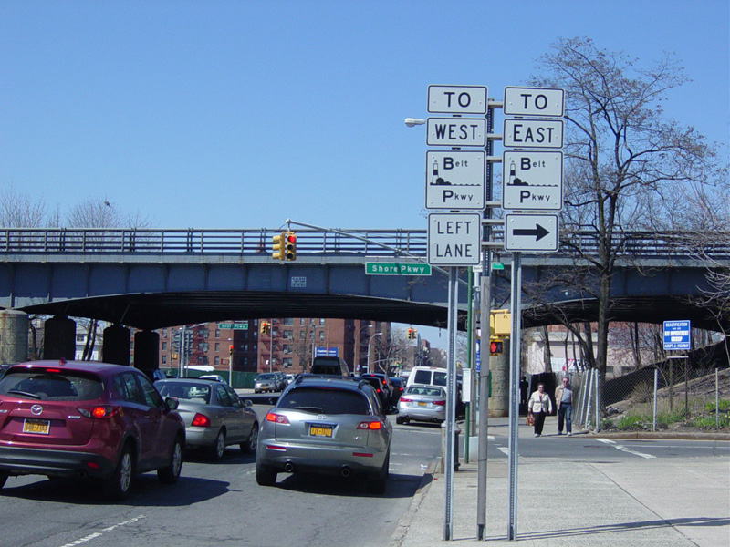 Ocean Avenue begins at Emmons Avenue in Brooklyn. Immediately, it crosses the Belt Parkway. There is no interchange here, but there is access to the service roads.