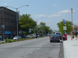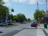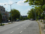 Richmond Terrace begins at Bay Street and the terminal of the Staten Island Ferry in St. George. It runs east as a four-lane divided road. The Kill Van Kull is on the right. There are oversized street name signs at Wall Street, Hamilton Avenue, and Nicholas Street.
