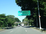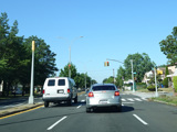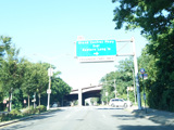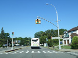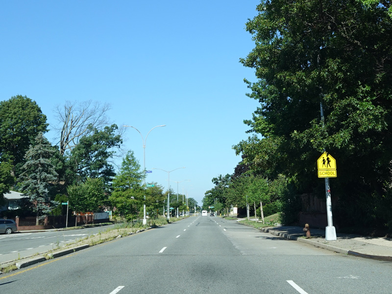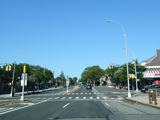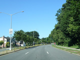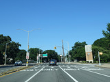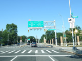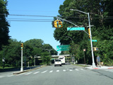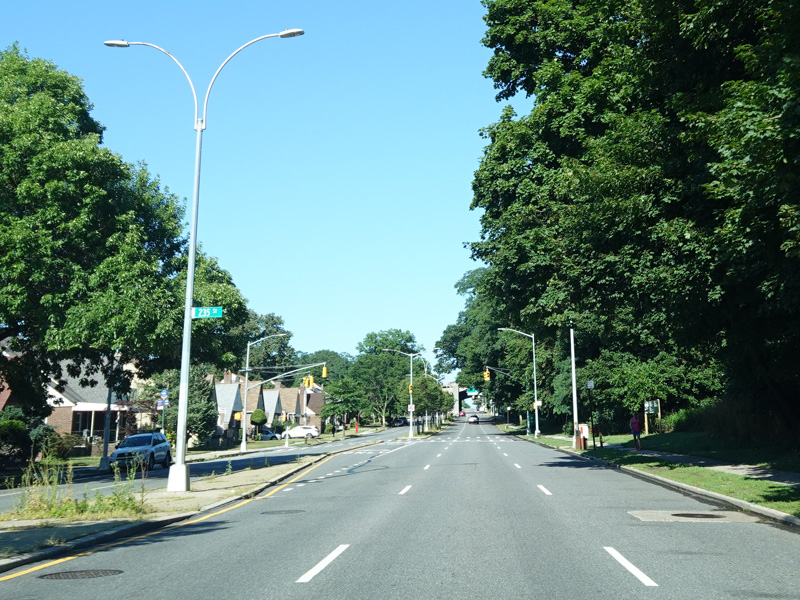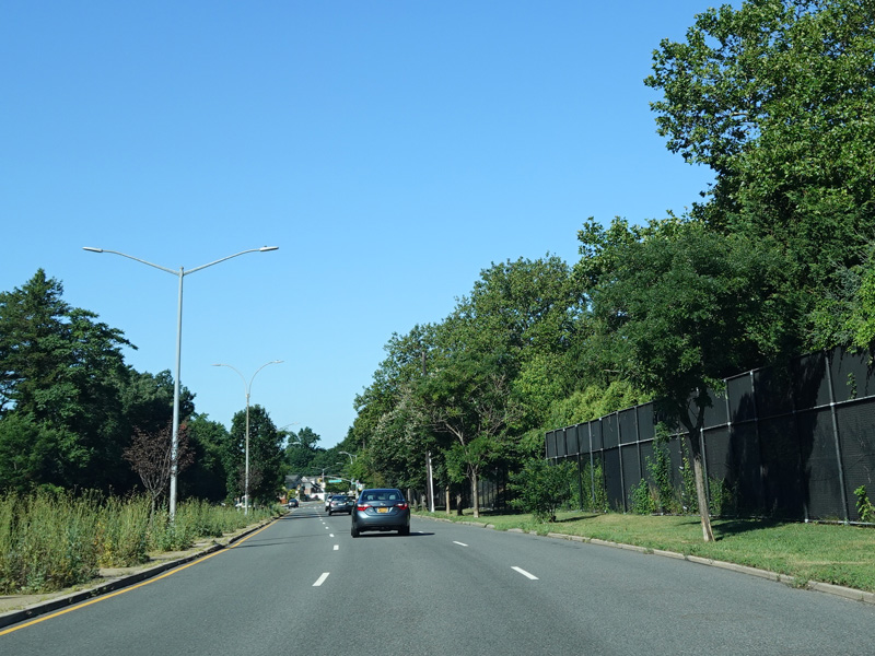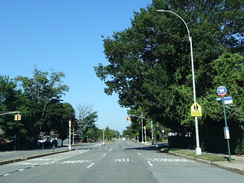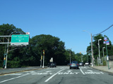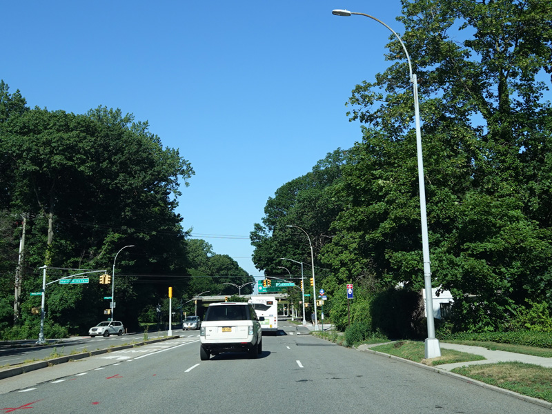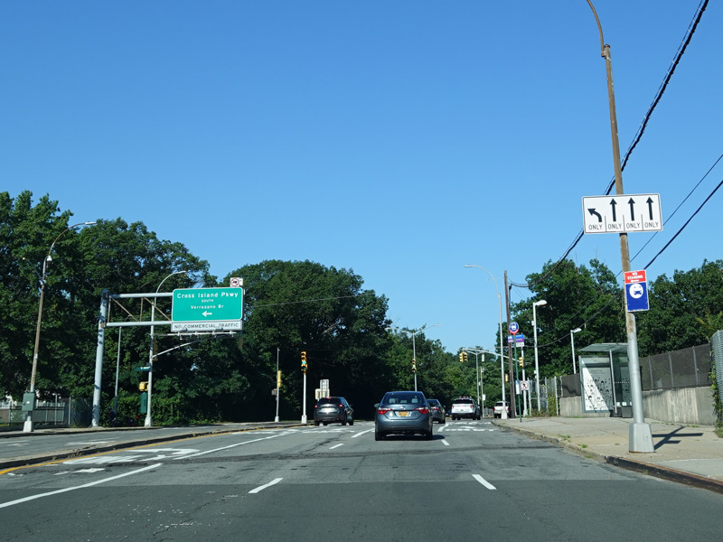 There is a traffic light with an oversized street name sign at Commonwealth Boulevard, immediately followed by an interchange with the Cross Island Parkway. It has an unusual configuration where both entrance ramps are on the left.