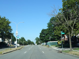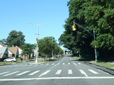 Union Turnpike runs west as a four-lane divided road. There is a traffic light with an oversized street name sign at Winchester Boulevard.