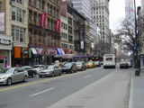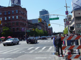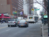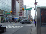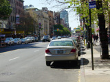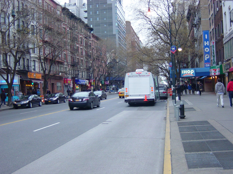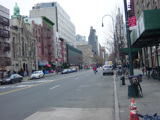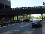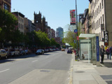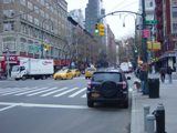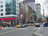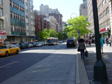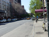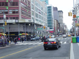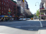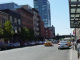 The section of West 14 Street between 9 Avenue and 10 Avenue is a cobblestone street. The High Line, an abandoned elevated railroad track that was converted into a park, passes over street. The short section of West 14 Street between 10 Avenue and 11 Avenue (NY 9A) is one-way in the opposite direction. To go south on NY 9A, turn left onto 10 Avenue, which ends at NY 9A just south of here. To go north, turn right onto 10 Avenue and then left onto West 15 Street.