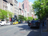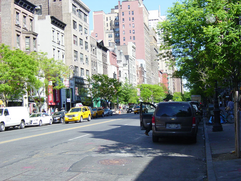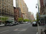 West 72 Street continues east across the Upper West Side. There is an oversized street name sign at Columbus Avenue.