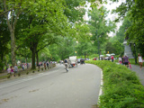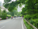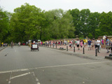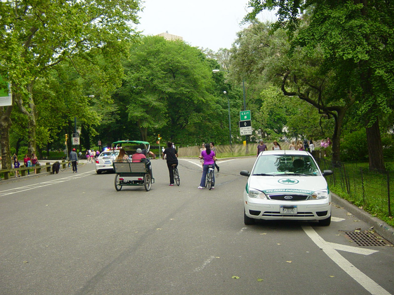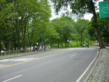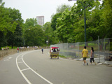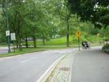 The transverse road that crosses Central Park and connects East 72 Street to West 72 Street is different from the other transverse roads in that it is a westbound one-way street. It is also different in that it has no overpasses. Instead, it merges with the Park Drive and then immediately splits off again. Bear left at the first fork and left at the second fork to stay on the transverse road. On the weekends, this transverse road is closed to automotive traffic and reserved for use by pedestrians, bicycles, and horses.