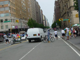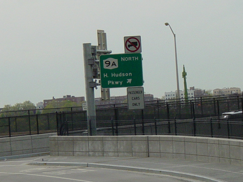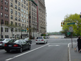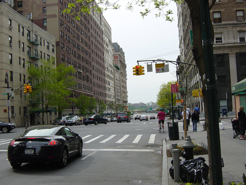 Riverside Drive begins on the right at this traffic light, which has an oversized street name sign. Motorists wishing to access the Henry Hudson Parkway (NY 9A) south must travel north on Riverside Drive to West 79 Street, where there is an entrance.