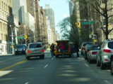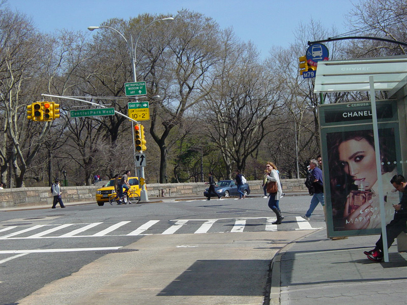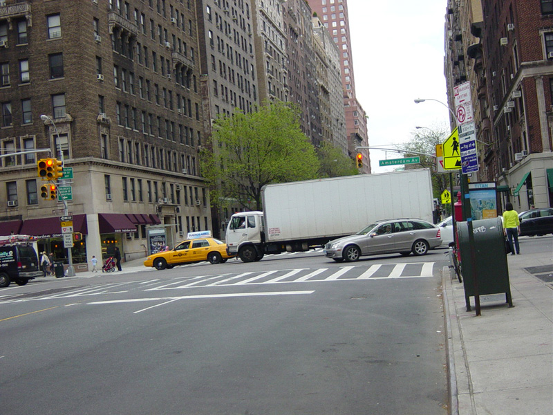 West 79 Street ends at Columbus Avenue, which is a southbound one-way street. The American Museum of Natural History is straight ahead. Access to the transverse road leading to the East Side is provided through West 81 Street, which is two blocks of north of here. Motorists wishing to continue across Manhattan beyond this point must turn left one block earlier at Amsterdam Avenue and travel two blocks north to West 81 Street.
