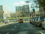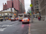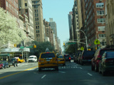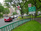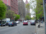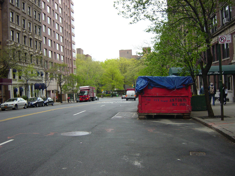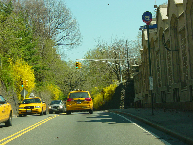 West 79 Street begins at the Henry Hudson Parkway (NY 9A) and runs east across the Upper West Side. There are oversized street name signs at Riverside Drive, West End Avenue, Broadway, and Amsterdam Avenue.