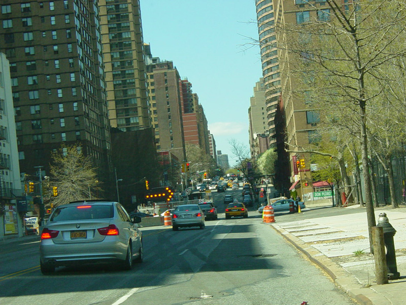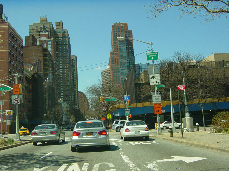 East 96 Street intersects Madison Avenue at a traffic light. To access the transverse road to the West Side from this direction, it is necessary to make a right turn here and then travel one block north on Madison Avenue and one block west on East 97 Street. East 96 Street ends one block ahead at 5 Avenue.