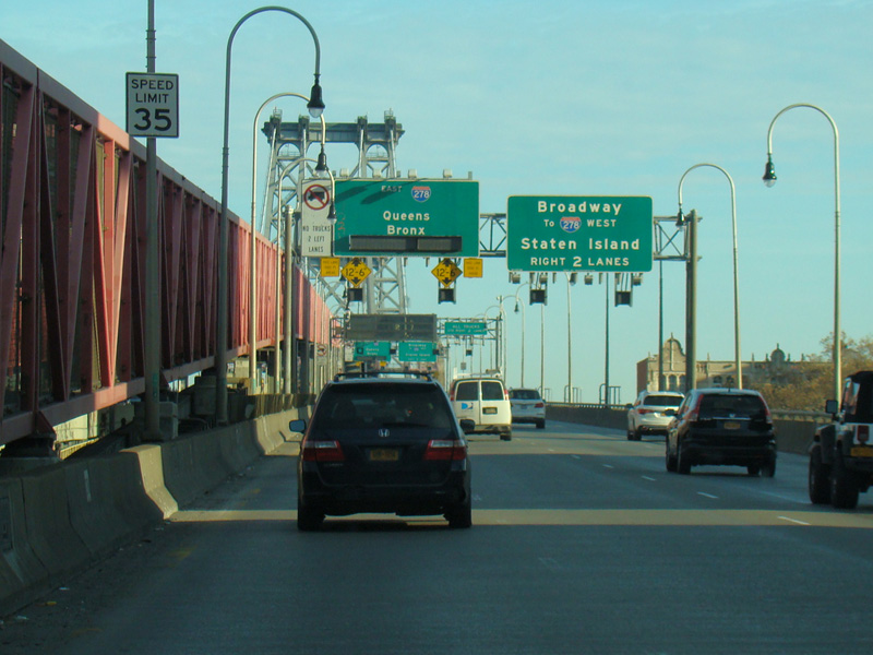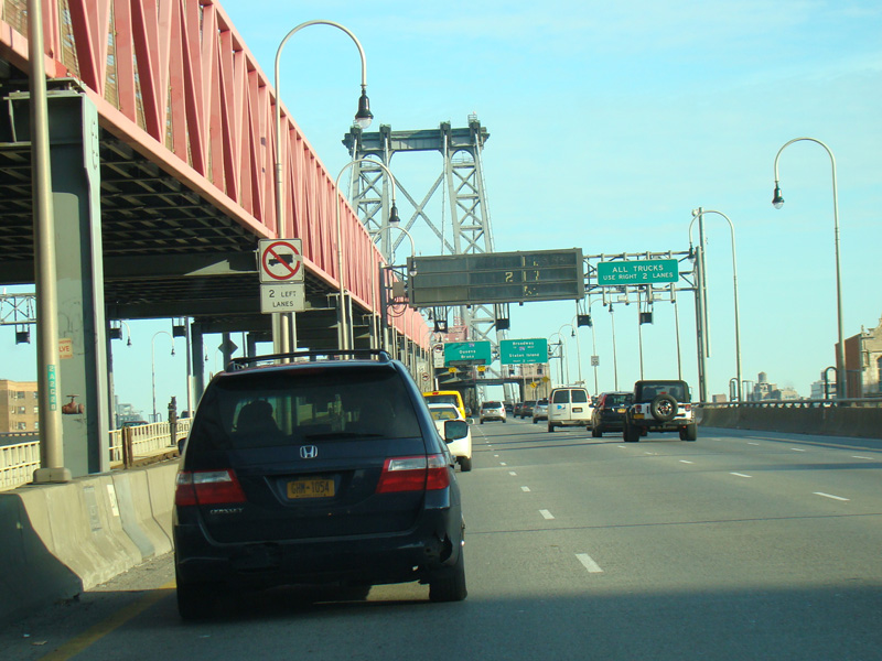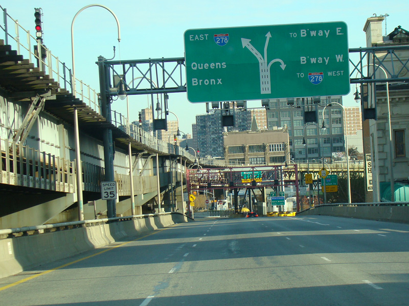 Welcome to Brooklyn! There is a pair of exits for Broadway. Use the westbound exit for access to the Brooklyn-Queens Expressway (I-278) west.