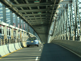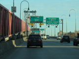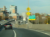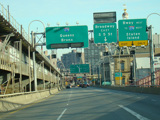 The roadway merges into the Brooklyn-Queens Expressway (I-278) heading east.