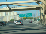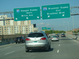 There are two exits at the end of the bridge. The first exit, on the right, is for the Bruckner Expressway (I-278) and Bruckner Boulevard. The second exit, on the left, is for the Major Deegan Expressway (I-87). Continue straight ahead for Willis Avenue.