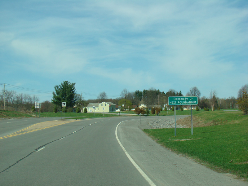 After a short distance, there is a second roundabout at the end of Marcy-SUNYIT Parkway.
