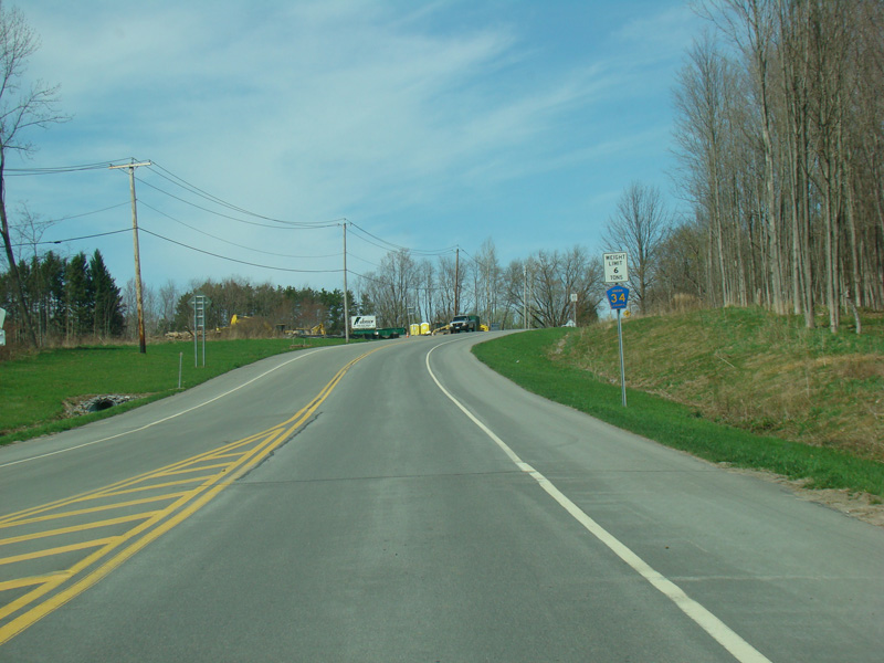 North of the second roundabout, CR 34 is known as Edic Road. The median ends, and the road narrows down to two lanes.