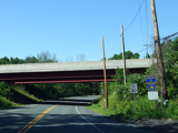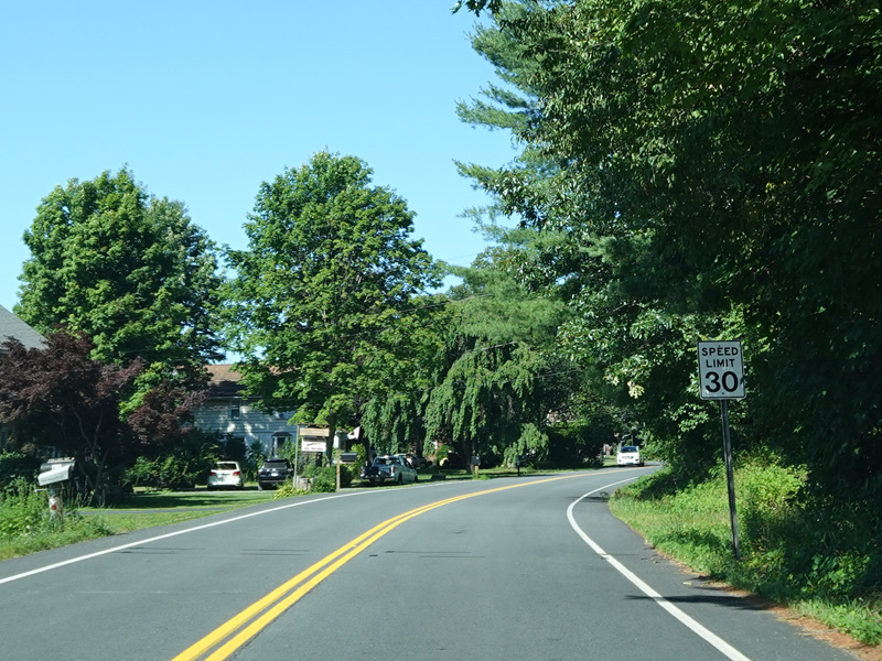 Welcome to New York and to Orange County! River Road (CR 521) becomes Maple Avenue upon entering the state. There is signage for the county line, but not for the state line. Immediately after crossing the border, Maple Avenue passes under I-84, but there is no interchange.