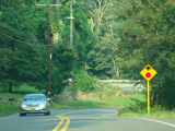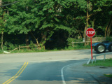 Orrs Mills Road ends at NY 32. There is a stop sign at the eastern terminus, although there is no signage giving the route number. Turn left to go south or turn right to go north.