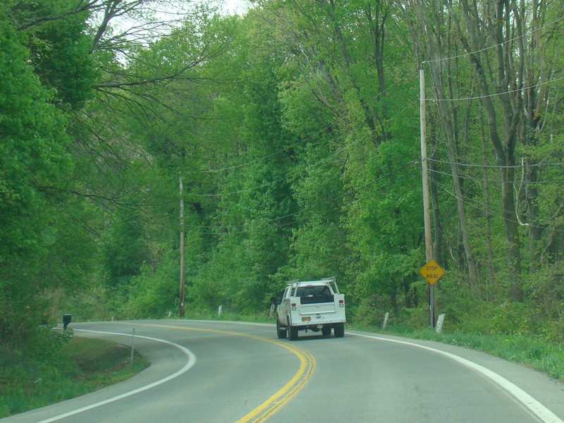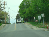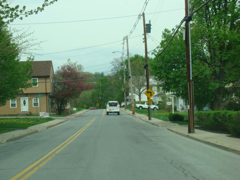 Mill Street ends at a stop sign at Quaker Avenue (CR 107). Turn left to go east or right to go west. There is no route signage here.