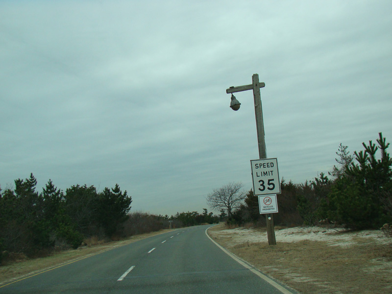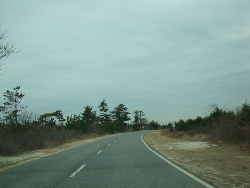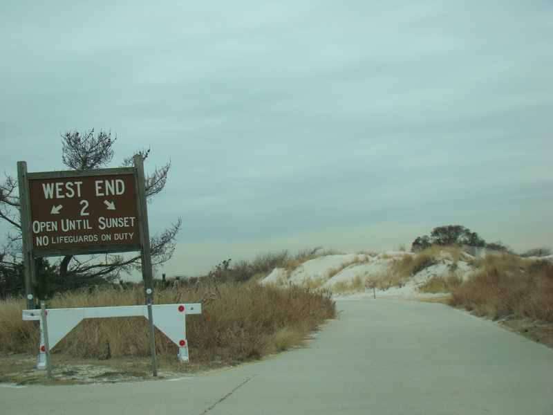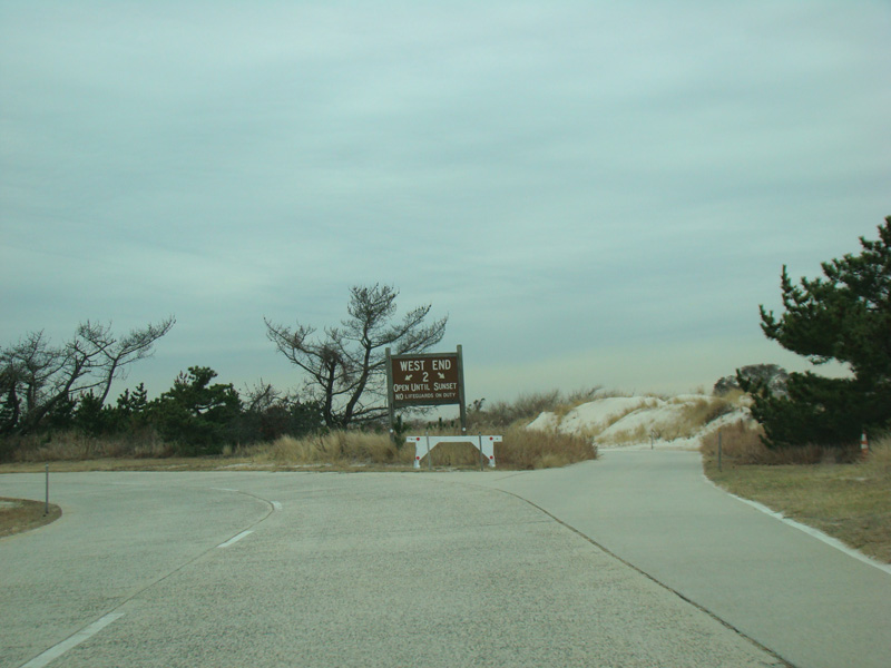 The Bay Parkway ends here. Bear right for the West End Beaches. Bear left to turn around and go back to the east.