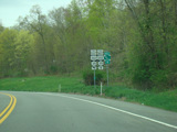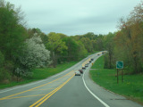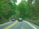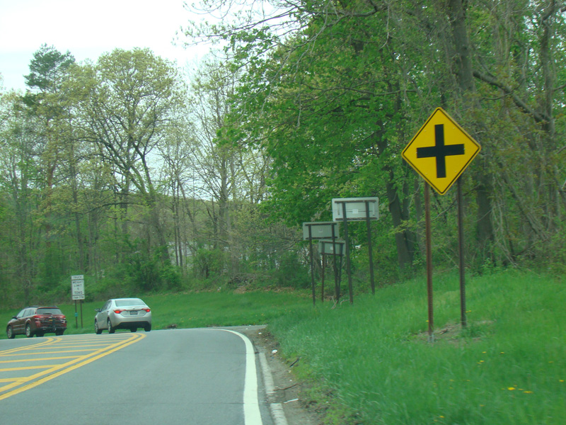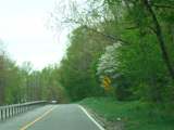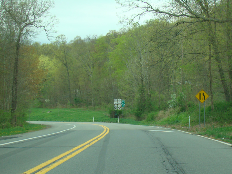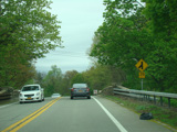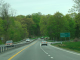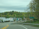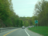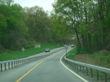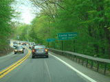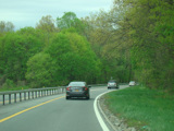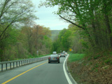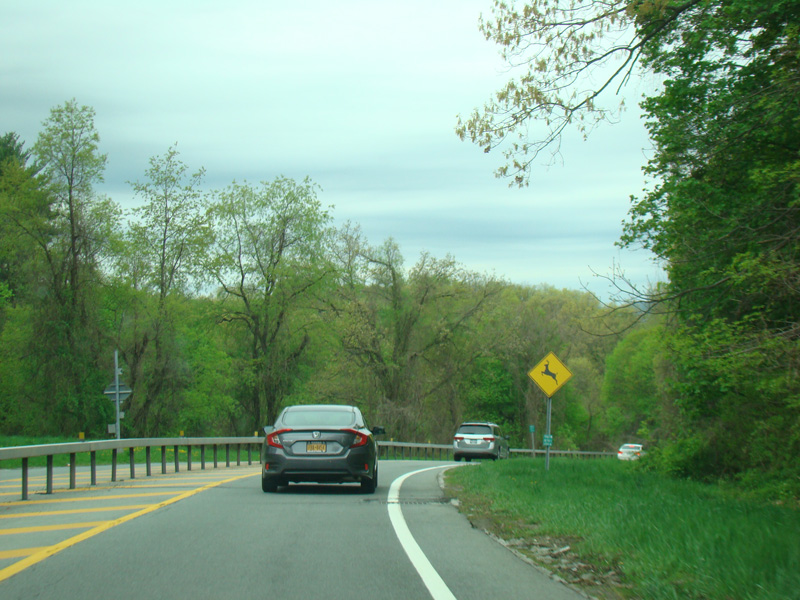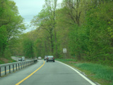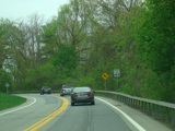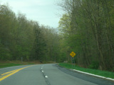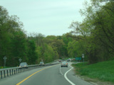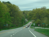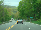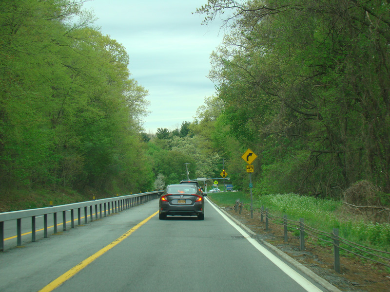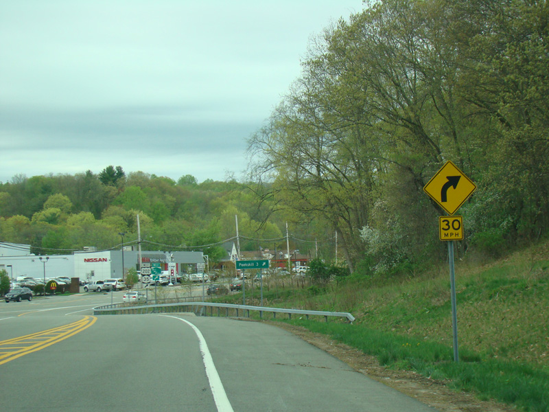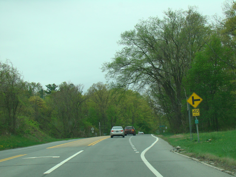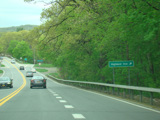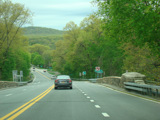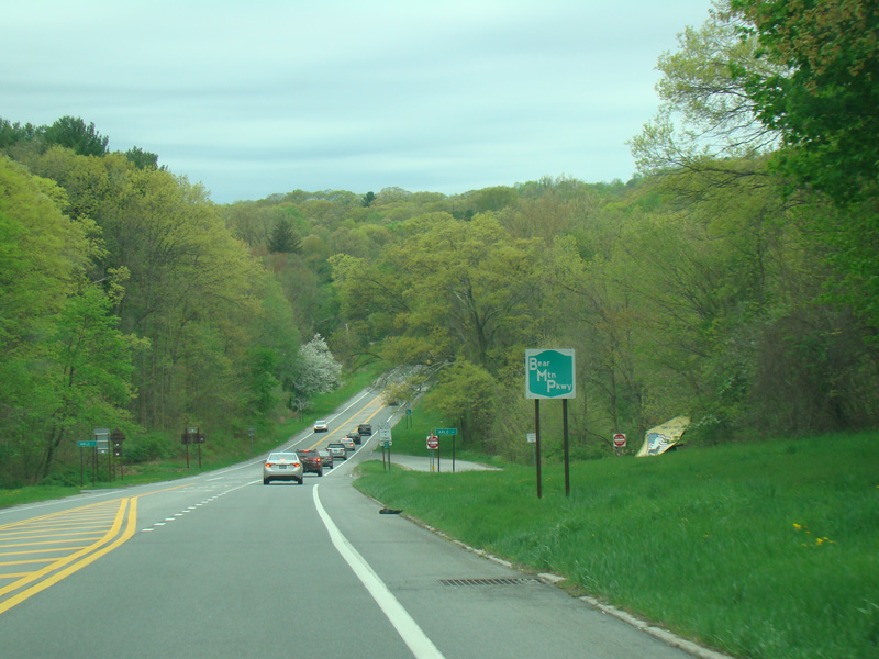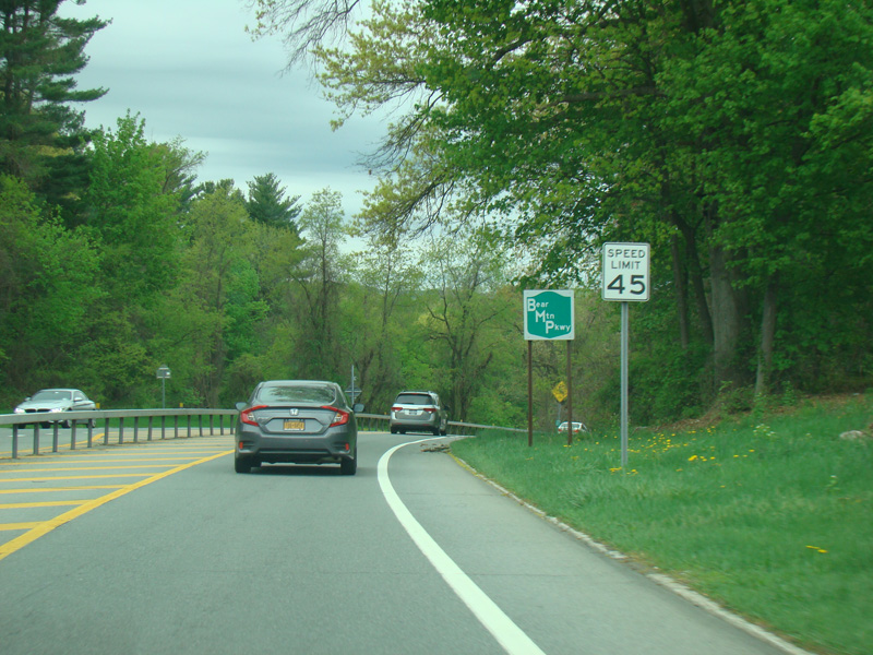 The Bear Mountain Parkway begins at the Taconic Parkway. The ramps merge together and narrow down to form a two-lane undivided road.