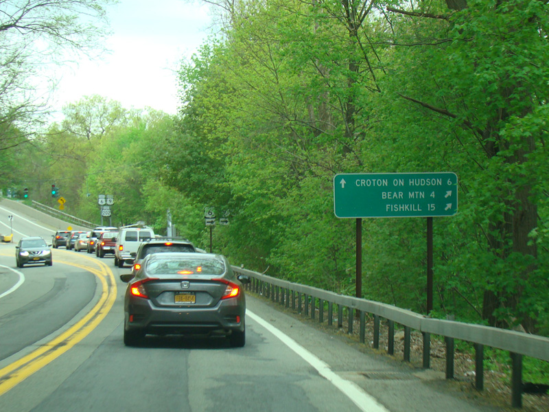 The parkway ends at a traffic light at US 6/US 9/US 202. Continue straight onto the Croton Expressway to go south/east. Turn right to go north/west toward the Bear Mountain Bridge (US 6/US 202).