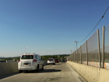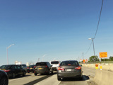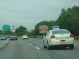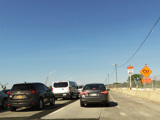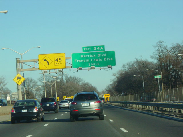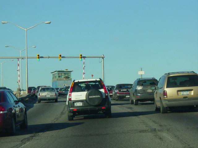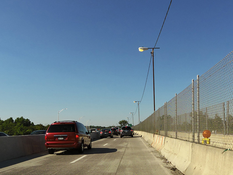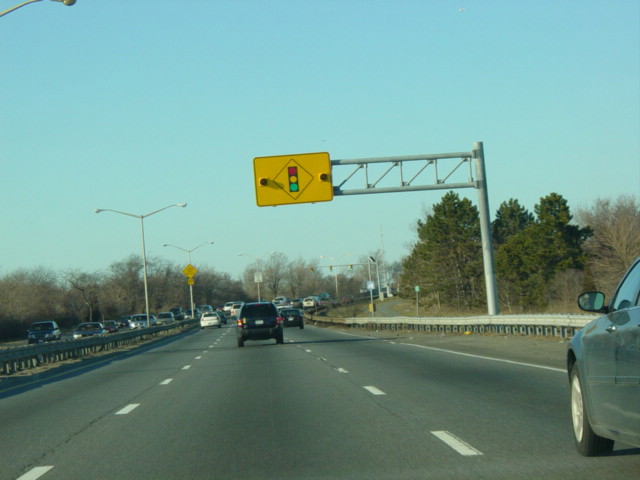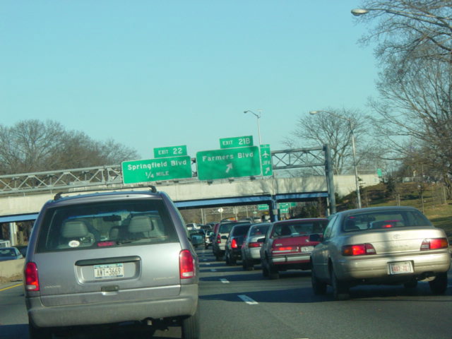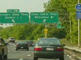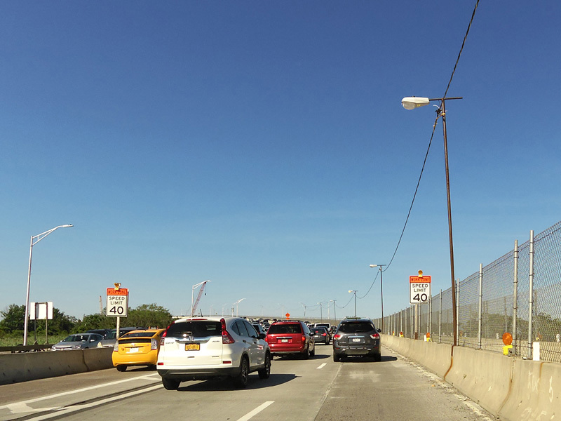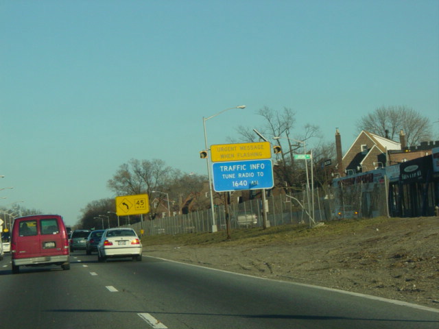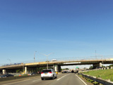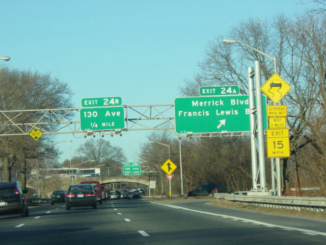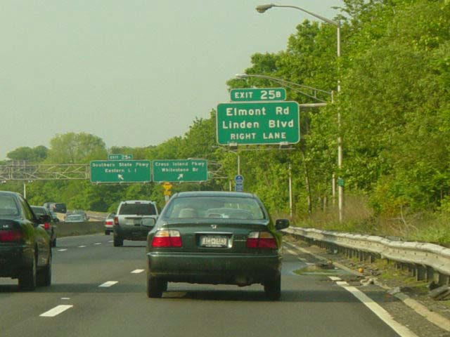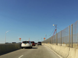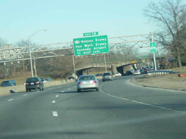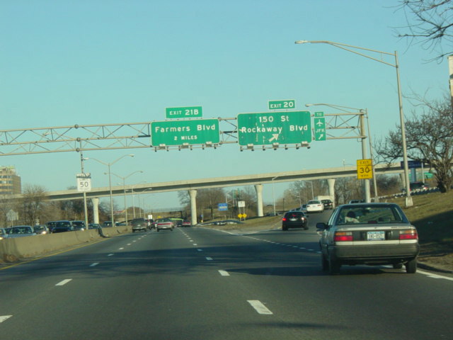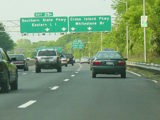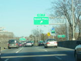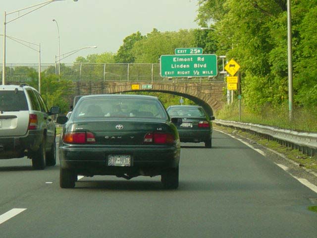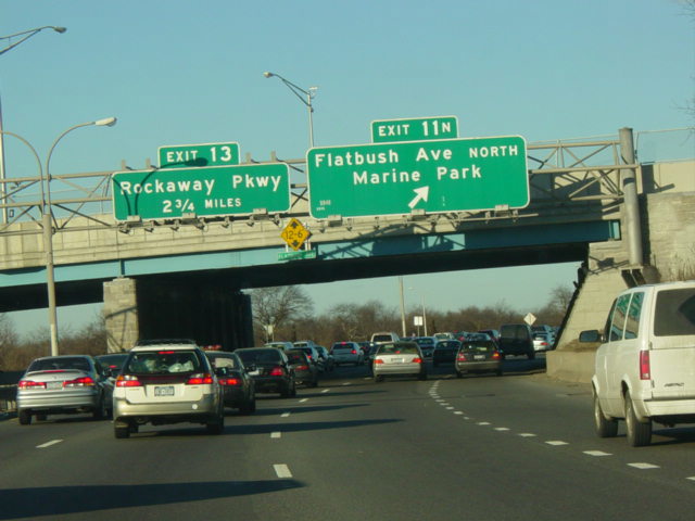 These pictures show the Belt Parkway eastbound at it appeared in 2006. Most of the signs and some of the overpasses have since been replaced. The two drawbridges have been replaced with non-movable bridges.