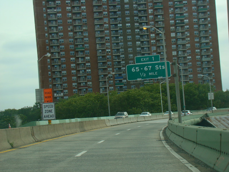 The Belt Parkway begins at the Brooklyn-Queens Expressway (I-278). Exit 1 is for 65 Street and 67 Street.