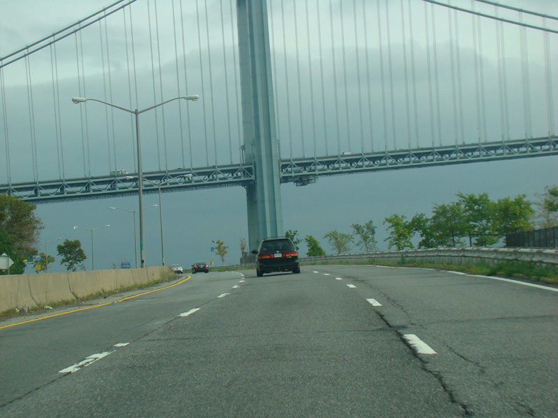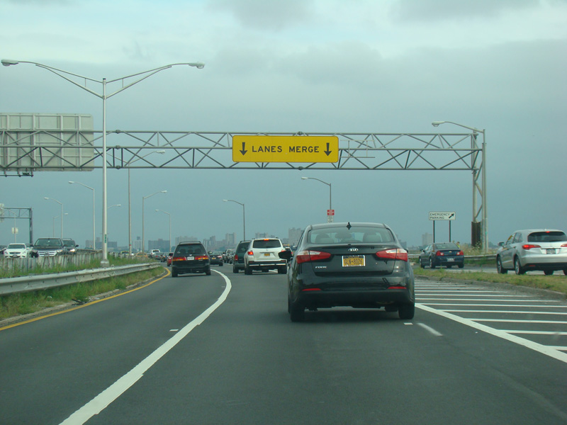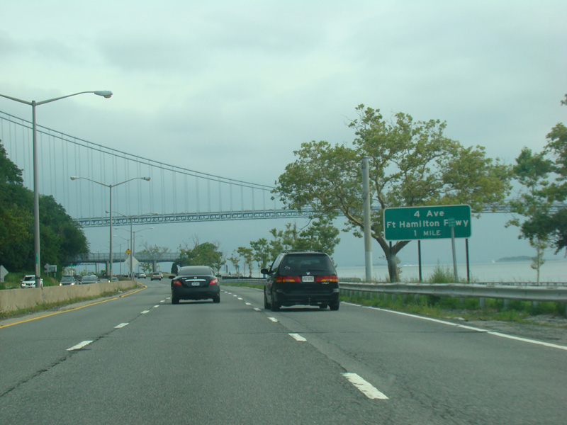 The ramp from the Verrazano Bridge (I-278) merges in from the right.