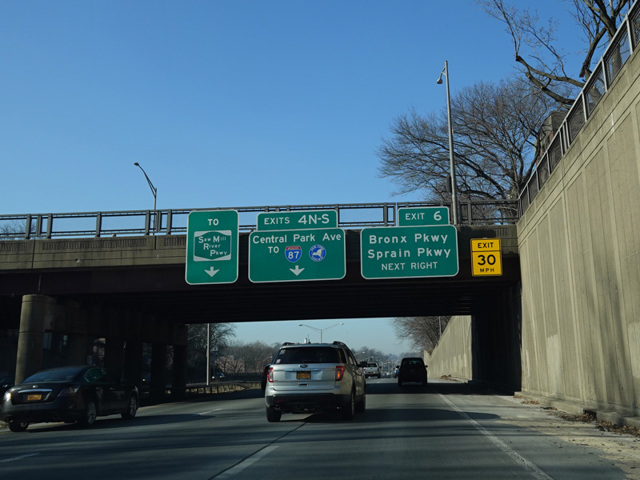 The Cross County Parkway is an east/west route in southern Westchester. It begins at the Saw Mill Parkway in Yonkers and runs east to the Hutchinson Parkway in New Rochelle. It is not well known and is almost never backed up. For those travelling to or from the north, it provides a good alternative to the congested Cross Bronx Expressway (I-95). Although the name might lead one to believe otherwise, the Cross County Parkway is maintained by the state, not the county.