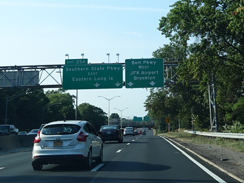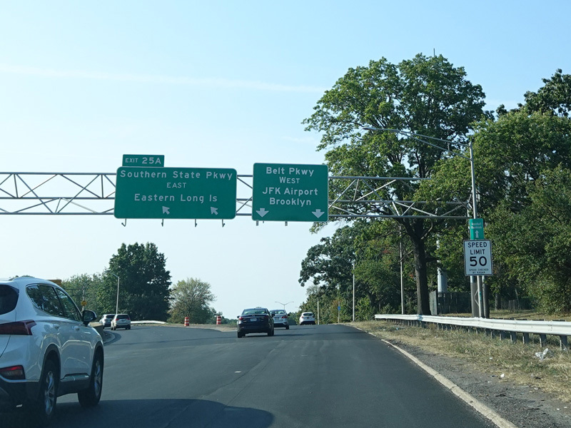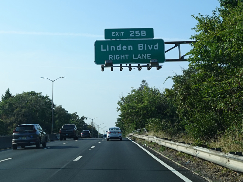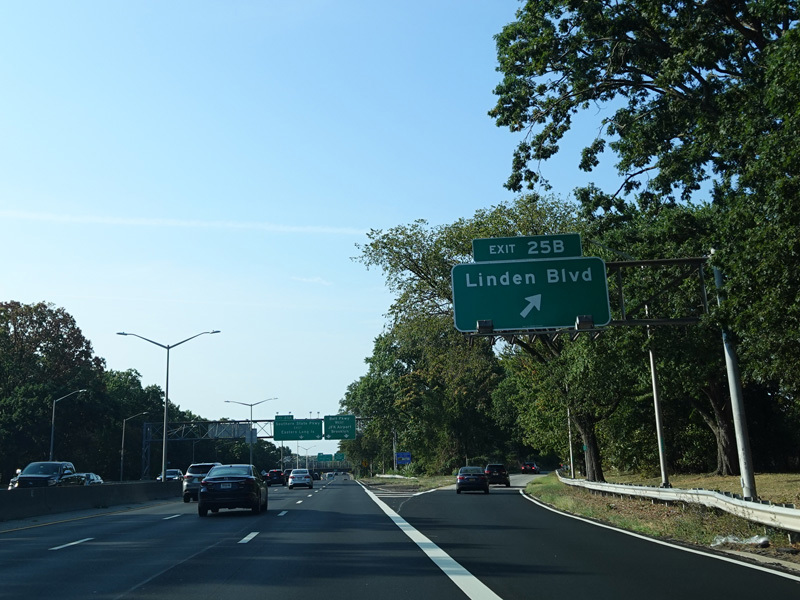 Exit 25B is for Linden Boulevard. Exit 25A is for the Southern Parkway. The Cross Island Parkway ends here. Continue straight ahead for the Belt Parkway.