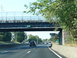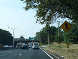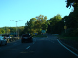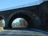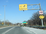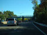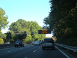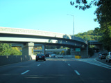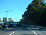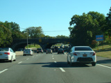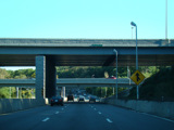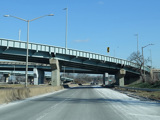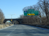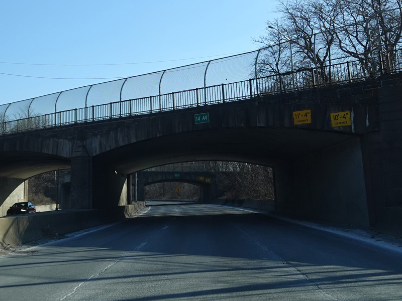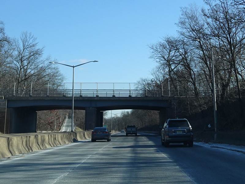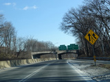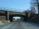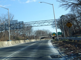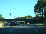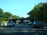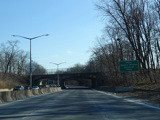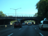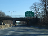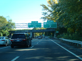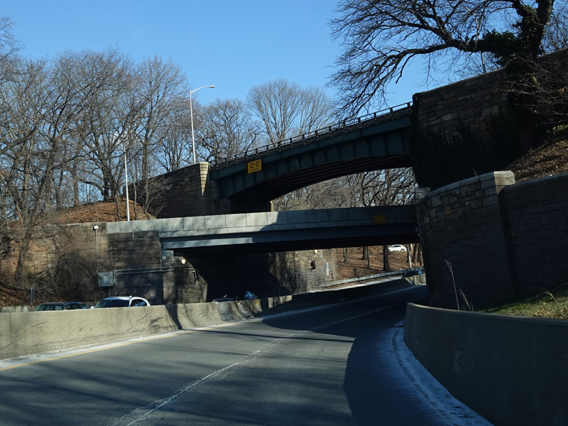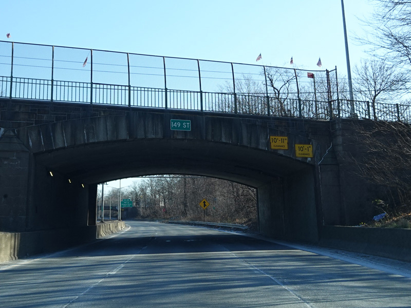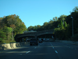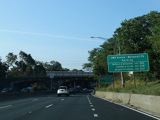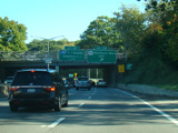 The Cross Island Parkway passes under the Throgs Neck Bridge (I-295), and then a lane from the bridge comes in on the right.