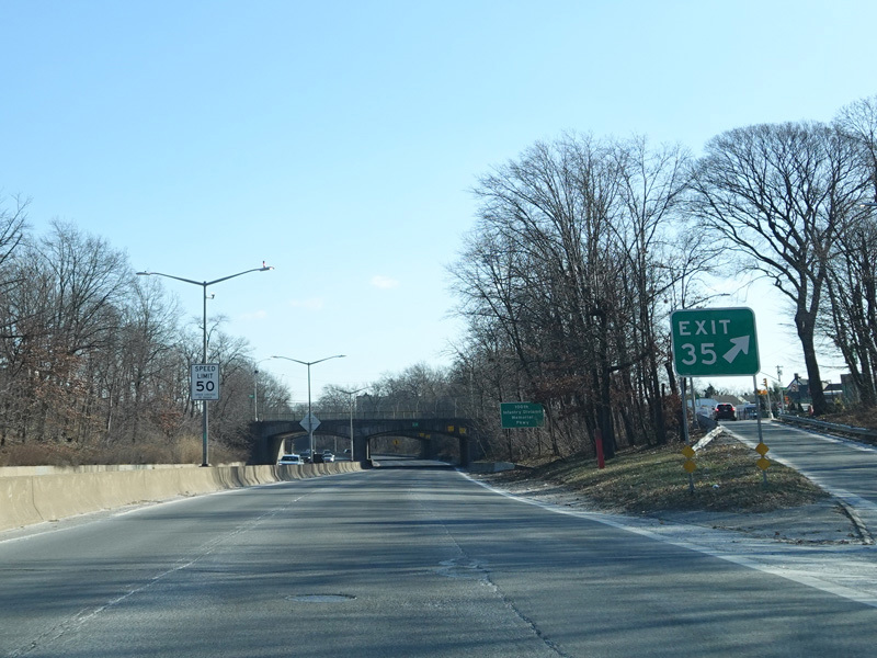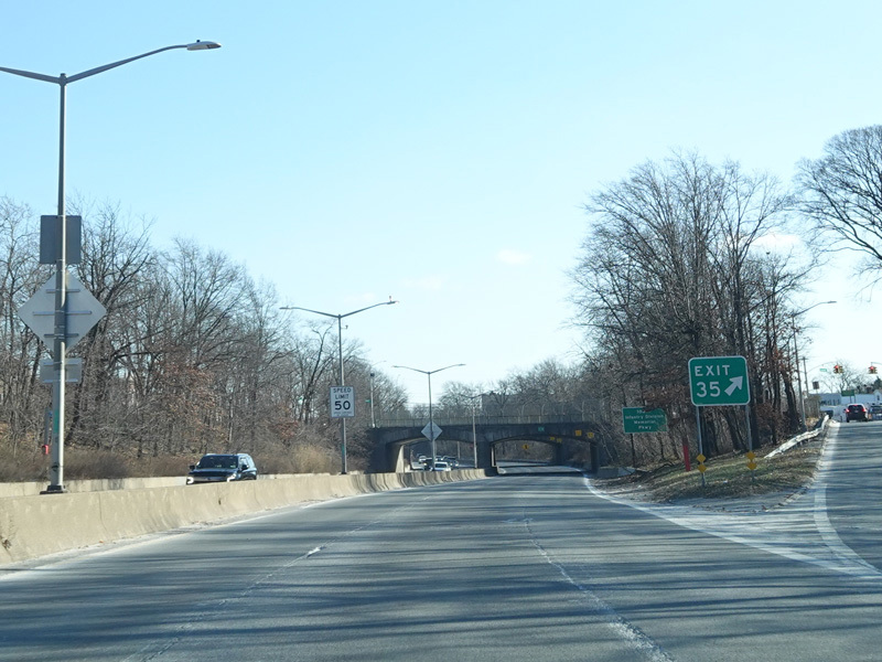 The Cross Island Parkway begins at the Whitestone Expressway (I-678). A lane from the Whitestone Bridge (I-678) comes in on the right. Exit 35 is for 14 Avenue and Francis Lewis Boulevard.