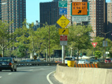 These pictures show the FDR Drive at exit 14 prior to construction work in 2010 that moved the exit ramp slightly to the north of where it was when the photographs were taken.