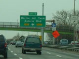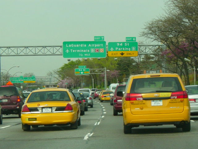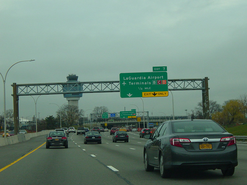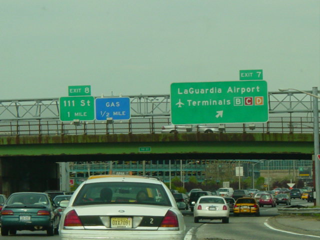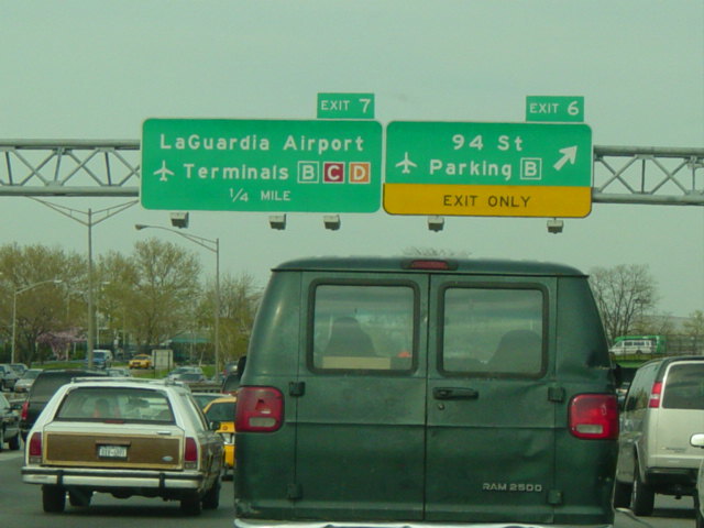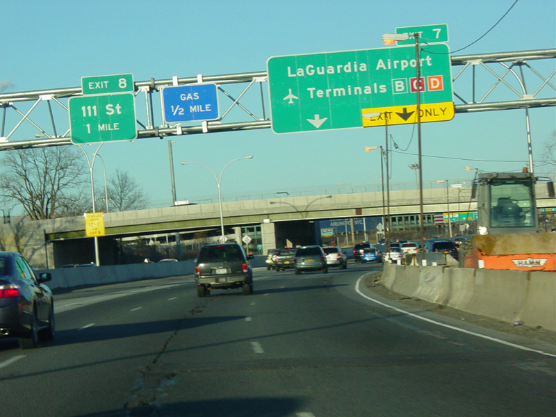 These signs for the exits for La Guardia Airport were updated after construction work to modernize the airport was completed.