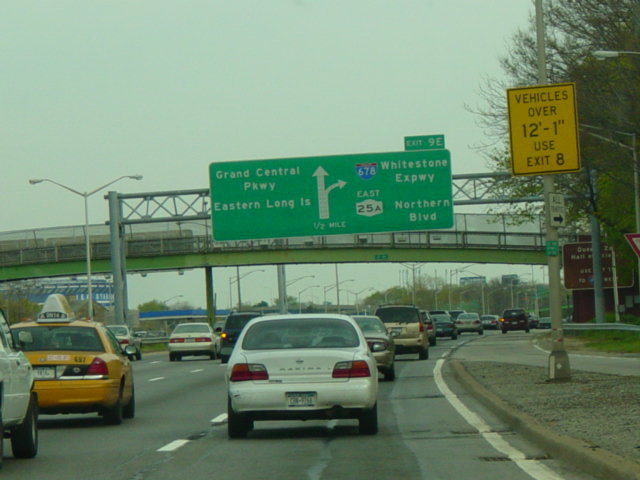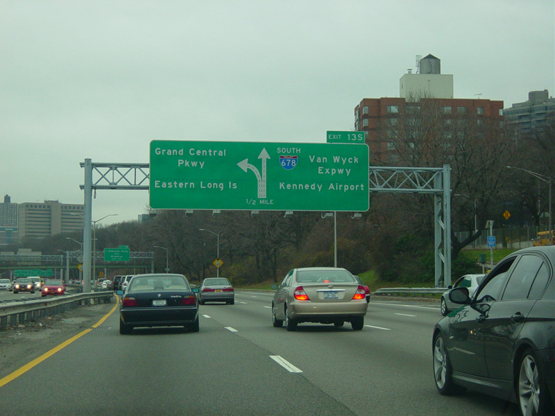 These signs, which were found at the beginning of the Grand Central Parkway, have been replaced. At the time, the section of I-278 between the RFK Bridge, which was then known as the Triboro Bridge, and the beginning of the Brooklyn-Queens Expressway was considered to be part of the Grand Central Parkway and assigned exit numbers accordingly. Motorists wishing to follow I-278 westbound had to take exit 4 from the Grand Central Parkway.