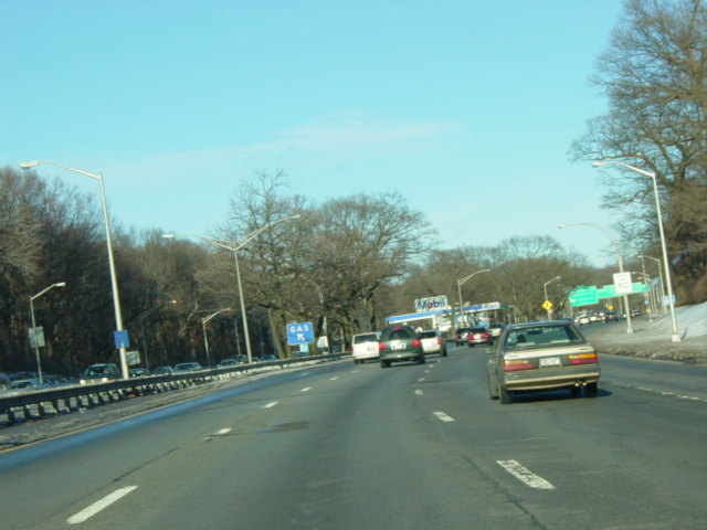 This picture shows the gas station along the Grand Central Parkway when it was a Mobil station. It is now a Gulf station.