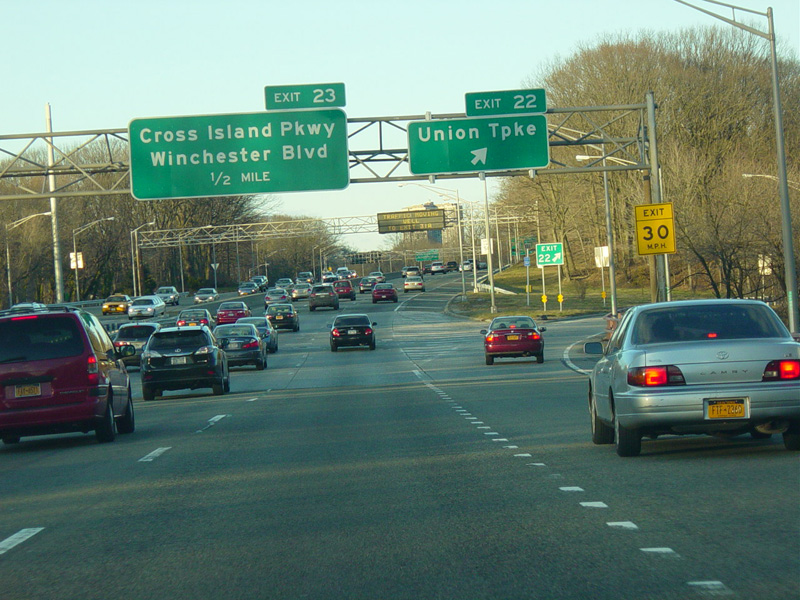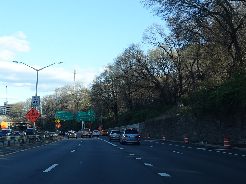 This picture show the Grand Central Parkway eastbound at exit 20B as it appeared before an exit only lane was added.