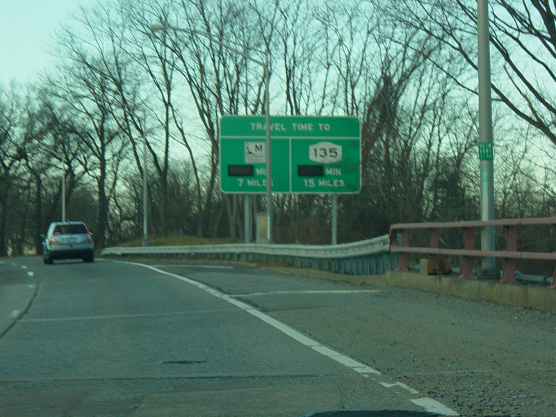 These pictures show some of the electronic signs along the parkway giving the estimated travel times to various exits at a point when they had been installed but were not yet functional.