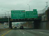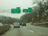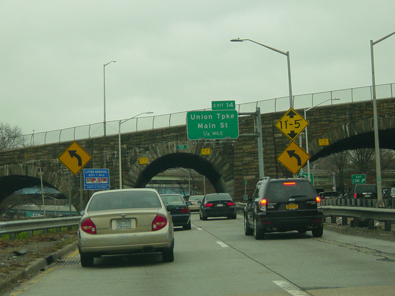 These pictures show the Grand Central Parkway eastbound at exits 12-16 as it appeared before work began to reconstruct the Kew Gardens Interchange. What is now exit 13 was then exit 13S. There was also an exit 13W for the Jackie Robinson Parkway, which is now accessed through exit 14.