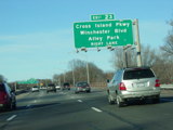 The signs shown in these pictures have been replaced with new ones that have their exit tabs aligned slightly differently and have the word "island" abbreviated.