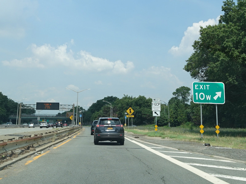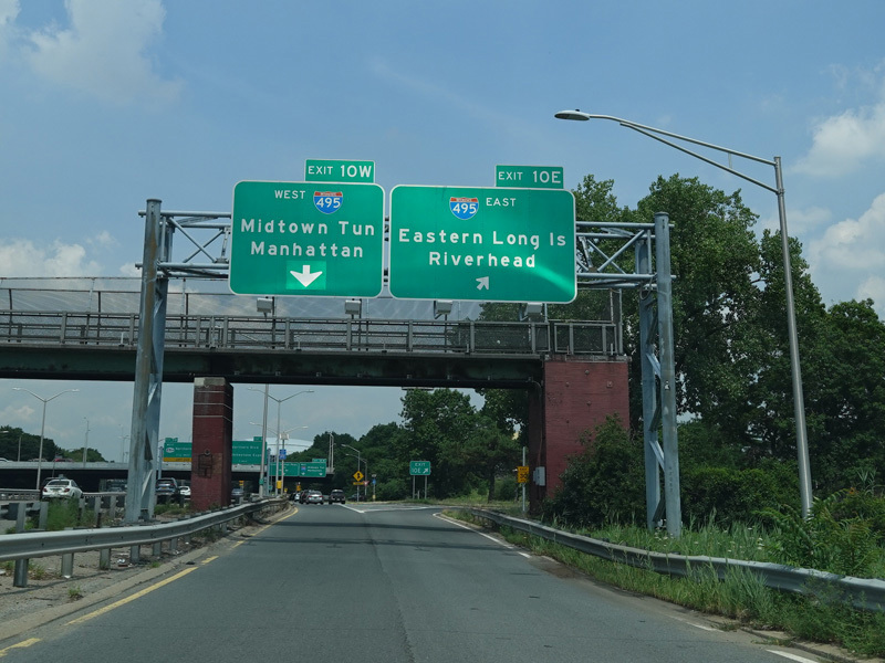 Exits 10E-W when travelling west share a common ramp. Use the first exit from the ramp to go east on the Long Island Expressway (I-495) or the second exit to go west.