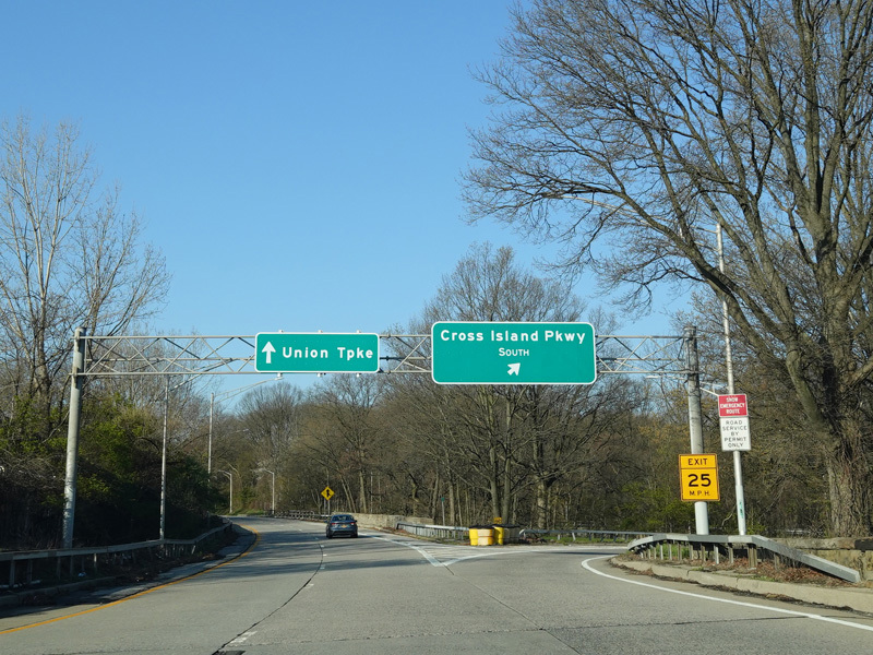 The ramp for exit 23 when travelling west has exits for the Cross Island Parkway in both directions, and then it splits. Bear right for Union Turnpike or left to get back on the parkway.
